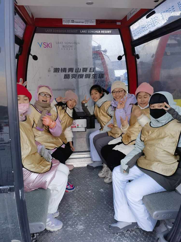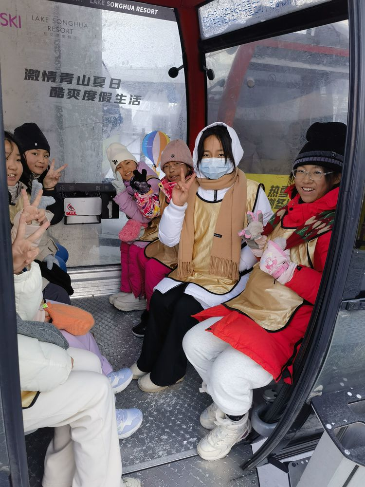 当坐在滑雪场的高空索道缆车上向下俯瞰的时候,同学们看着远处冰雪覆盖的松花江好似蜿蜒巨龙,于银白雪地里穿行,周边群山或巍峨或绵延,不由得发出阵阵赞叹。对于少年们,这是另外的一种收获,是眼界的拓宽,更是精神层面的延展。