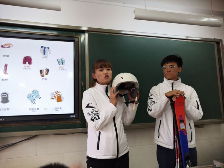 讲师们从冬奥会的认知、滑雪运动的历史、安全滑雪装备的介绍以及基本滑行的知识等多方面的诠释了冰雪进校园公益课程的内容。同时还为同学们准备了一些小礼物,把惊喜带到他们的身边。