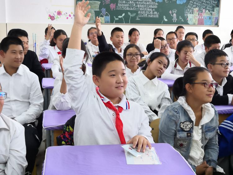 同学们目不转睛,笑脸如花。