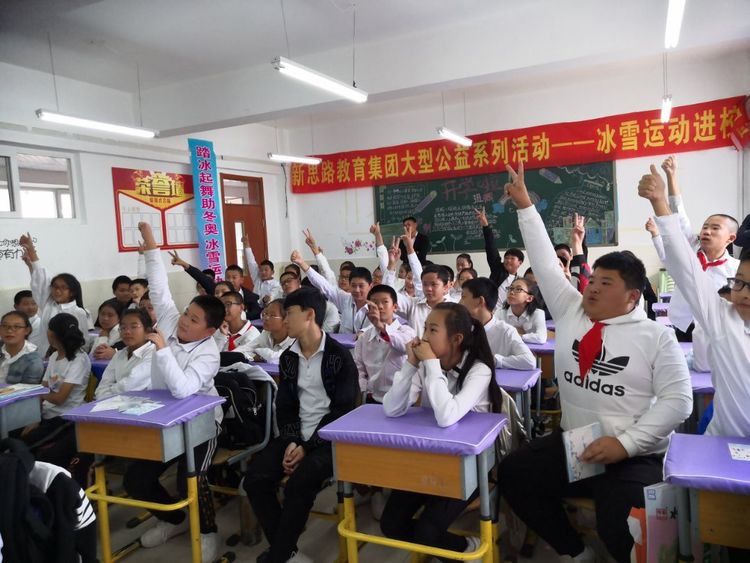 踏冰起舞助冬奥,冰雪运动进校园。为贯彻落实习近平总书记关于“带动3亿人上冰雪,发展成为冰雪运动强国”的指示精神,积极促进冰雪运动的普及和提高。由吉林省新思路教育集团邀请到吉林万科松花湖滑雪教育基地课程讲师共同承办“2019年冰雪运动课程进校园大型公益活动”在长春市第八十二中学隆重开幕!